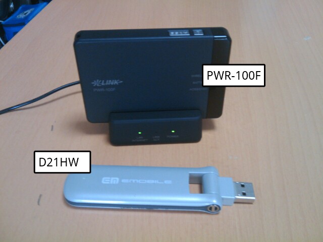 早速、今まで使っていた下のイーモバのUSBアンテナ(D21HW)君からSIMを抜いてPWR-100F君に移設。さらに格安Android携帯であるHT-03A君を導入以来、完全にホッタラカサレテイたシンビアン携帯M1000からminiSDカードも移設。で、設定の始まりです。